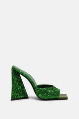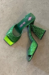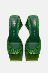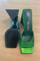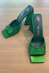 Ain icon: "Devon" Mules in glittery green by THE ATTICO.