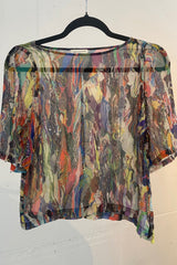 Collectors item! Silk Top by Dries van Noten from the 2008/2009 collection. In collaboration with Dries van Noten Jakob Schlepper printed these orbit prints using the last existing wax rolls for this technique.
