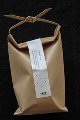 Der formschöne, bauchige 100-ml-Sprayflakon wird in einem traditionellen japanischen Reisbeutel aus Kraftpapier verkauft.