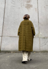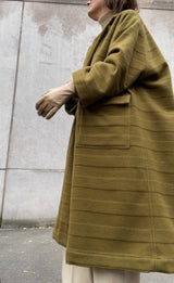 Dieser Mantel wurde von Cabinet in Zürich entworfen und in Widnau/SG, in kleiner Stückzahl, von Schneider-Spezialistinnen sorgfältig hergestellt. Die Stoffe stammen häufig aus begrenzten Überbeständen internationaler Marken und bestehen hauptsächlich aus natürlichen Fasern. Sie sind dafür gemacht, getragen und geliebt zu werden.