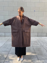 Unser unisex oversize Dust Coat, man zieht ihn an und will ihn nicht mehr ausziehen - grosszügig & unkompliziert geschnitten mit grossen aufgesetzten Taschen. Ideal für jederzeit und überall drüber. Neu haben wir ihn auch in einer Version mit längeren Ärmeln, für die goss gewachsenen Personen.