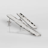 Entdecken Sie eine Welt, in der starres Metall sich in fließende Formen verwandelt. Eine kühne Erkundung von Material und Maschine, in der Fantasie und Unerwartetes Gestalt annehmen. Paar ungleich langer, unregelmässig geformter Ohrringe in 925er-Silber, mit Stecker.