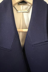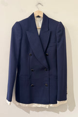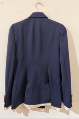 Flawless dark blue Alexander McQueen Blazer, double breasted, with elaborately crafted cream white silk lining that sticks out at the jacket and sleeve hems.