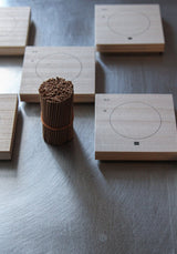 Formschönes Holz-Schächtelchen mit 50 Stäbchen Inhalt.