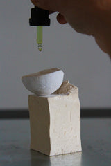 Das Set enthält einen Diffusor, bestehend aus zwei organisch geformten Keramikobjekten - ein Halbkreis und eine Säule. Die rohe Oberfläche dieser Skulptur eignet sich vorzüglich, um den Duft der neuen Moon Essence zur Geltung zu bringen.