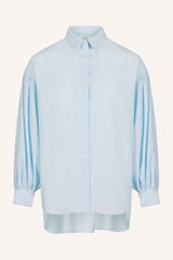 Diese angenehme, luftige Chambray-Bluse ist eine raffinierte Wahl für Ihren Look. Gefertigt aus einer feinen Baumwollqualität, hat die Bluse eine entspannte Oversize-Passform mit einem leicht längeren, gerafften Rücken. Die tiefen Schulternähte mit Puffärmeln und der raffinierte Kragen mit Knopfleiste verleihen der Bluse einen eleganten Look.