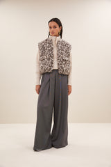 Die Maggie Sleeveless Leo Vest von BY-BAR aus den Niederlanden ist eine ärmellose Jacke mit lässigem Look und bequemer, lockerer Passform. Dank der Druckknöpfe lässt sie sich gut schliessen und öffnen, der elastische Bund und die Wollmischung sorgen für einen weichen Griff, während praktische Seitentaschen Ihre wichtigsten Utensilien griffbereit halten.