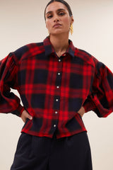 Die Sarah Short Red Check Bluse von BY-BAR aus den Niederlanden ist die feminine Interpretation des Holzfällerhemdes mit einer bequemen, lockeren Passform, die sich perfekt für jeden Anlass eignet. Die kurze Länge und die verspielten, voluminösen langen Ärmel verleihen Ihrem Outfit einen frischen, lebendigen Look. Perlmuttknöpfe sorgen für eine dezente, elegante Note.
