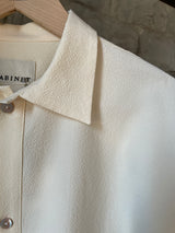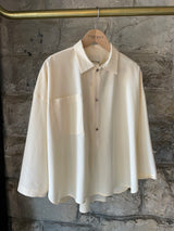 Die Bluse Boxy - ein neues Teil der Cabinet Kollektion. Boxy geschnitten mit halb offener Knopfleiste in VM und kleinem Kragen. Seitliche Schlitze.
