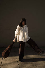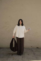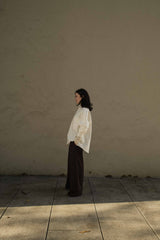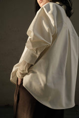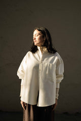 Bluse Loop - ein neues Modell der Cabinet Kollektion. Grosszügig geschnitten mit Stehkragen und cooler Doppeltasche auf Brust mit Loopdetail. Im Rücken mit doppelt verarbeitetem Coller und Falt, sowie mit seitlichen Schlitzen.