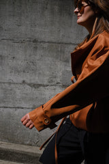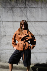 Unsere coole Bomberjacke ist zurück, in zwei Farbvarianten. Einmal klassische schwarz und einmal in Rost. Viele wunderbar gearbeitete Details wie Eingriffstaschen, hoher Stehkragen und Gürtel machen dieses Stück aus.