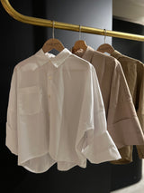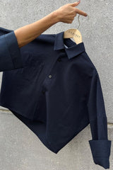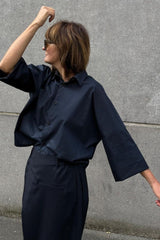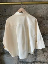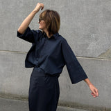 Das Pendant zur beliebten Trapez-Bluse von Cabinet - die 3/4 Arm Version mit etwas längerem Arm. Auch sehr toll mit einem Rollkragen Pulli drunter an etwas kühleren Tagen. Kastig geschnitten.