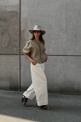 Kleines, blousonartiges Jäckchen mit grosser Tasche vorne. Brust- und Eingrifftasche all-in-one. Verschluss in VM als verdeckte Knopflochleiste mit wertigen Hornknöpfen. Kurze Proportion, generöse, verkürzte Ärmel. Super als chices Jäckchen für drüber im Sommer. Oder mit einem Rollkragenpulli drunter im Winter.