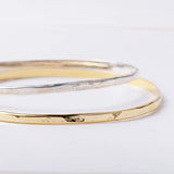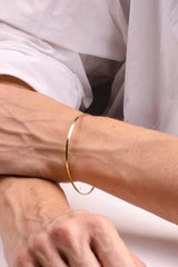 Feiner, leicht unregelmässig gehämmerter Armreif aus recyceltem 925er-Sterling-Silber vergoldet, in den Grössen S oder M erhältlich. Ein Entwurf von CHARLOTTE WOONING aus Rotterdam/NL.