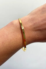 Das Armband Ancient Thick ist etwa 6 mm breit, so dass es schön solo zu tragen ist. Durch seine ovale Form passt es gut an den Arm.