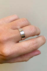 Ein robustes gehämmertes Band: Dieser charakterstarke Ring von Charlotte Wooning aus Rotterdam/NL trägt unweigerlich den Namen von Robin Hood, der in den Büchern auch als Robin von Loxley bekannt ist.