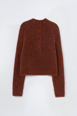 Zeitloser und ikonischer Pullover von CORDERA aus Spanien. Leicht und kurz geschnitten in Oversize-Form. Details sind der Rollkragen mit Knöpfen und die langen Ärmel mit zwei Knöpfen an den Manschetten. Weiches und feines Garn mit einer ganz besonderen Melange.
