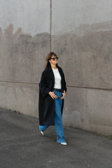 Unser unisex oversize Dust Coat, man zieht ihn an und will ihn nicht mehr ausziehen - grosszügig & unkompliziert geschnitten mit grossen aufgesetzten Taschen. Ideal für jederzeit und überall drüber. Neu haben wir ihn auch in einer Version mit längeren Ärmeln, für die goss gewachsenen Personen.