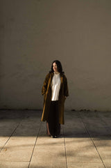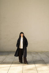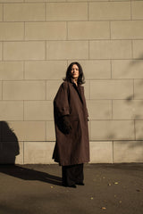 Dieser Mantel wurde von Cabinet in Zürich entworfen und in Widnau/SG, in kleiner Stückzahl, von Schneider-Spezialistinnen sorgfältig hergestellt. Die Stoffe stammen häufig aus begrenzten Überbeständen internationaler Marken und bestehen hauptsächlich aus natürlichen Fasern. Sie sind dafür gemacht, getragen und geliebt zu werden.