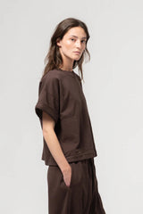 Dieses T-Shirt von GIRLS OF DUST aus Antwerpen hat eine stylische, kastenförmige Silhouette, die für einen entspannten Look sorgt. Die hochgekrempelten Ärmel verleihen ihm das gewisse Etwas und machen es perfekt zum Kombinieren oder solo tragen. Das T-Shirt besteht aus 100 % Baumwolle und fühlt sich robust an, ohne dabei an Komfort einzubüßen. Zwei Seitentaschen sorgen für zusätzliche Funktionalität.