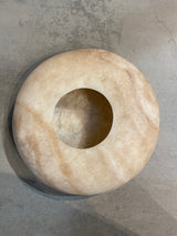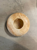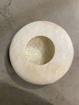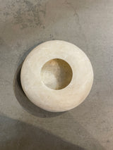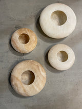 Flache Lichtgefässe, naturbelassener weisser oder brauner Alabaster, handbearbeitet - in zwei Grössen - von Sirocco Living aus Dänemark.