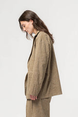 Der neue Blazer von GIRLS OF DUST aus Antwerpen ist etwas oversized und hat ein tiefgezogenes Revers - er sitzt lässiger als ein normaler Blazer und hat keine Schulterpolster. Mit großen Fronttaschen und einer kleinen Brusttasche.
