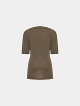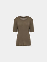 T-Shirt aus 90% Rayon und 10% Seide. Farbe Khaki Brown
