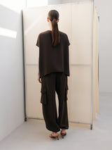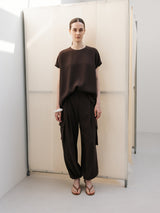Fliessende Cargo-Hose aus 83% Triacetat und 17% Poly. Farbe Braun