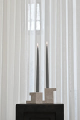 Inspiriert von architektonischen Bauteilen, besteht der Brick Candle Holder aus exquisitem massivem Kalkstein (Limestone) aus Ägypten, der elegant in scharfe geometrische Formen geschnitzt ist. Jeder Kerzenhalter ist ein Unikat, das die reichen und schönen Muster des Natursteins hervorhebt.