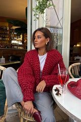 Ein typischer Entwurf von HOPE MACAULAY aus England: Colossal-Knit-Cardigan in Bordeauxrot.