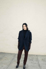 Diese Hose wurde von Cabinet in Zürich entworfen und in Mendrisio/TI, in kleiner Stückzahl, von Schneider-Spezialistinnen sorgfältig hergestellt. Die Stoffe stammen häufig aus begrenzten Überbeständen internationaler Marken und bestehen hauptsächlich aus natürlichen Fasern. Sie sind dafür gemacht, getragen und geliebt zu werden.