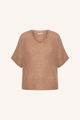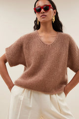 Entdecken Sie den Ivy Pullover von BY-BAR aus den Niederlanden, einen bequemen Pullover mit V-Ausschnitt und kurzen Ärmeln – perfekt für einen mühelos lässigen Look. Die lockere Passform sorgt für optimalen Tragekomfort, während das minimalistische Design ohne Logo oder Stickerei einen zeitlosen, stilvollen Look verleiht. Farbe Cappuccino.