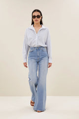 Die Jule Stripe Bluse von BY-BAR aus den Niederlanden ist ein nachhaltiges Must-have. Mit ihrer lässigen Oversize-Passform und dem klassischen Kragen bietet diese gestreifte Bluse täglichen Tragekomfort und mühelosen Stil. Die Knopfleiste an den Ärmeln und die lockere, luftige Passform sorgen für einen modernen und bequemen Look.