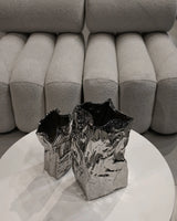 Inspiriert von Papiertüten betont die Kami-Vase die Ästhetik knisternder und zerknüllter Papiertüten. Kami, das japanische Wort für Papiertüten, ist eine Ode an die japanische Papierkunst. Kami-Vasen haben eine unebene Oberfläche mit Kurven und Rissen, die die Form einer zerknüllten Papiertüte mit knisternden Enden und Kanten bilden. Die Vase betont das schöne organische Design mit einem handgefertigten Touch.