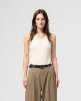 Ein elegantes, geripptes Jersey-Tanktop von GIRLS OF DUST aus Antwerpen, das sich ideal zum Kombinieren eignet. Die strukturierte Rippenstruktur sorgt für eine figurbetonte Silhouette, die sich perfekt unter Shirts oder solo tragen lässt.