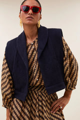 Die Suzie Jacke ist eine coole ärmellose Jacke mit einer bequemen Passform. Das Jacquardmuster verleiht ihr einen stilvollen Look, während die praktischen Seitentaschen für praktischen Stauraum sorgen.