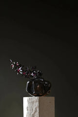 Die Wabi-Glasvasen von 101CPH werden mit Präzision aus mundgeblasenem Glas geformt. Das Glas wird zunächst auf 1500 Grad erhitzt, bevor es in eine speziell angefertigte Form gegeben wird. Anschließend wird Luft in das geschmolzene Glas geblasen, wodurch es sich ausdehnt und seine charakteristische Wabi-Form annimmt. Danach wird die Glasvase in einem Ofen gehärtet, gefolgt von dem filigranen Prozess des Schneidens und Polierens ihrer Öffnung. Schließlich wird sie in der charakteristischen Farbe „Smoke“ sprühlackiert, was ihren natürlichen, erdigen Charme unterstreicht. Aufgrund der handwerklichen Herstellung ist jede Glasvase ein Unikat mit subtilen Variationen und zarten Luftblasen, die zu ihrem individuellen Charme beitragen.