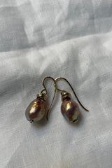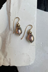 Handgefertigte Rolled-Gold-Ohrhaken (Paar) mit grossen gold- und auberginefarbenen Edison-Perlen.