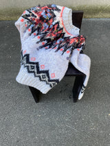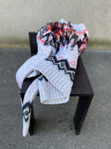 Mit transparenten Pailletten besetzter Jacquard.Pullover von ROBERTO COLLINA. Basifarbe grau melange, mit pfirsichfarbenem Motiv.