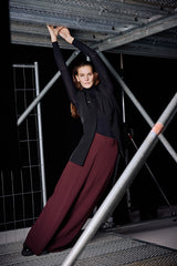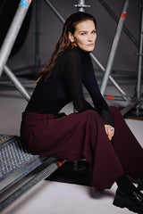 Unisex-Hose von ROSSI, weit geschnittenes Bein. Modell Ivon Fluid Cade, Farbe 588 Barolo (Weinrot)