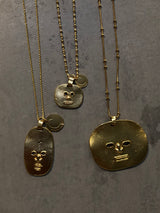 Entdecken Sie unsere exquisiten, in Nepal handgemachten goldenen Face-Anhänger in drei ovalen Grössen. Jeder Anhänger wurde mit Sorgfalt von Kunsthandwerkern gefertigt, wodurch jeder Anhänger ein einzigartiges Stück ist. Die ovalen Formen bieten eine schöne Balance zwischen Modernität und klassischem Charme.