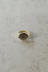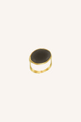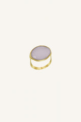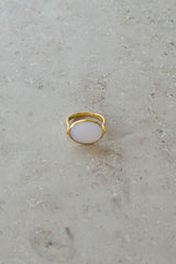 Dieser ovale Ring von BY-BAR aus den Niederlanden ist ein echter Hingucker. Der Ring enthält einen grossen ovalen Milchglas- Stein in einer filigranen Fassung, die sehr bequem zu tragen ist.