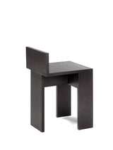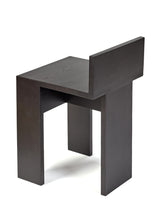 Minimalistischer Stuhl aus dunkel gebeiztem Eichenholz von Marie Michielssen für Serax. Der Entwurf erinnert an klösterlich-schlichte Möbel.