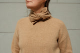 Weicher Pullover mi einem verlängerten Polokragen, der offen getragen oder zu einem kleinen Schal verknotet werden kann. Von Roberto Collina - made in Italy.