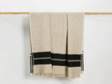 Edles Plaid (Tagesdecke) der Serie «Marshall» im Format 140 x 220 cm, gewoben und konfektioniert von LIBECO in Belgien. 70% Leinen, 30% Wolle. Kanten mit dekorativer Fransenborte. Erhältlich in der Farbkombination Natur/schwarz.