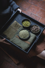 Edle Leinen-Servietten der Serie «Marie» im Format 42 x 42 cm, gewoben und konfektioniert von LIBECO in Belgien. Sorgfältig verarbeitet mit breitem Saum und generösen Tischtuchecken. Variante «Green Stripe».