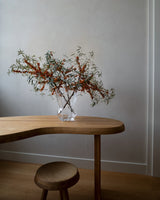 Die Form ist aus einem einzigen großen Stück gefertigt, und jeder Winkel ist anders geschnitzt, so dass beim Umdrehen der Vase eine neue Perspektive entsteht. Das macht die Vase ohne Blumen genauso schön wie mit.