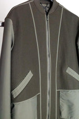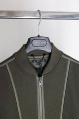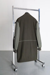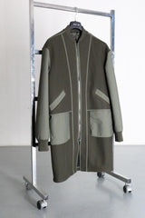This bomber-style designer coat by Helmut Lang combines minimalist design with high-quality materials. The body is khaki and is complemented by comfortable nylon details. The striking cut and structured finish make it a real eye-catcher. The stand-up collar ensures a modern and elegant look.