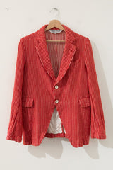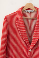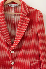 Red-white striped blazer from the 2007 Comme des Garçons collection. 100% wool, but feels more like a very soft cotton blend. Unlined construction, fabric stretches nicely.