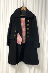 This coat from the runway 2004 collection by Yohji Yamamoto, is a very rare and special find. With it's printed fur on the lapel a one of a kind piece. The interior has some signs of use which can be repaired easlily and the length was adjusted by the pre-owner, hence this special price.